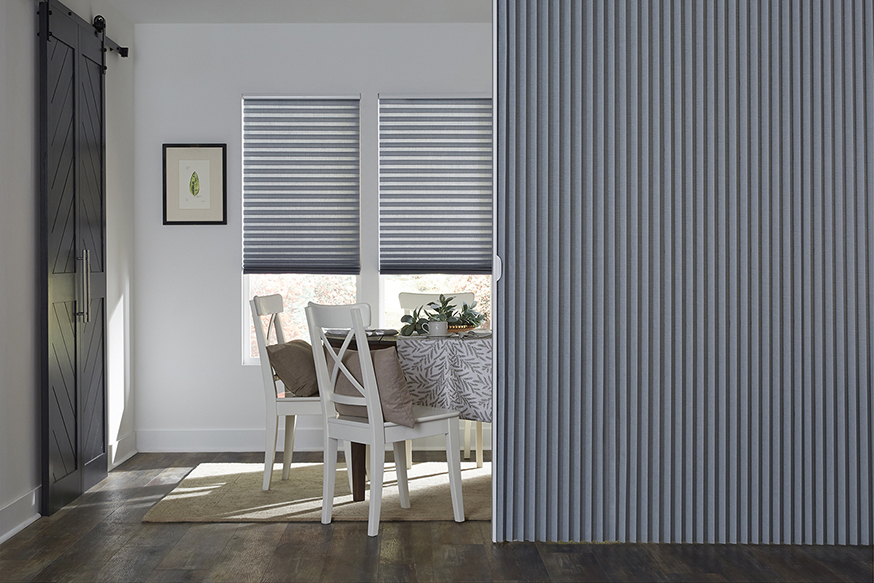 An offering from our Parasol® Cellular Shade Collection, this vertical solution provides coverage for sliding glass doors, large windows, or even as a room divider. Available in one-way or split-draw options and operates with a push or pull at the handle.