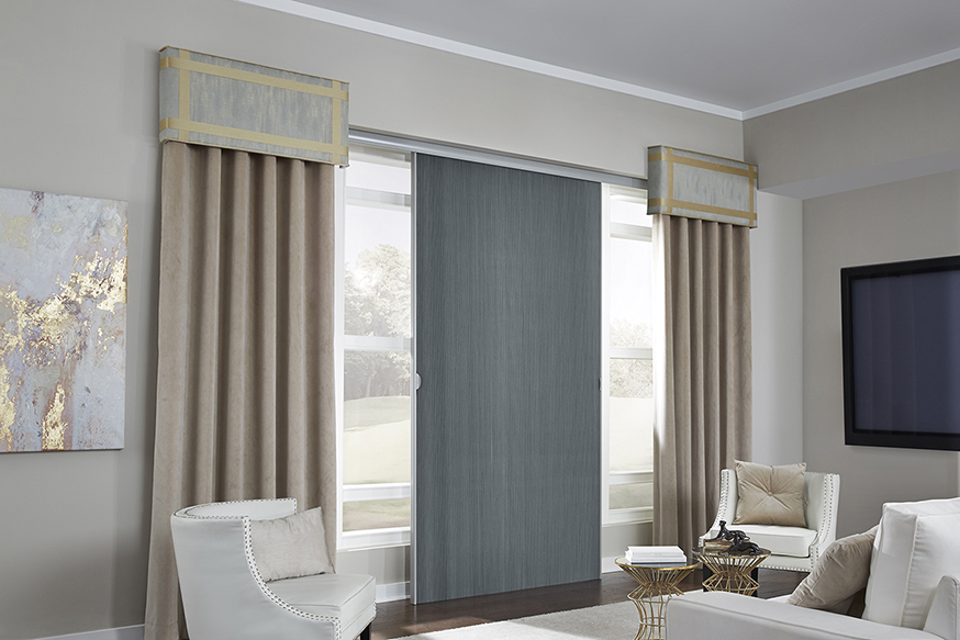 Craft a layered look by pairing custom soft fashion draperies with your Panel Track System. Choose from hundreds of fabrics and a wide array of styles for your perfect room look.