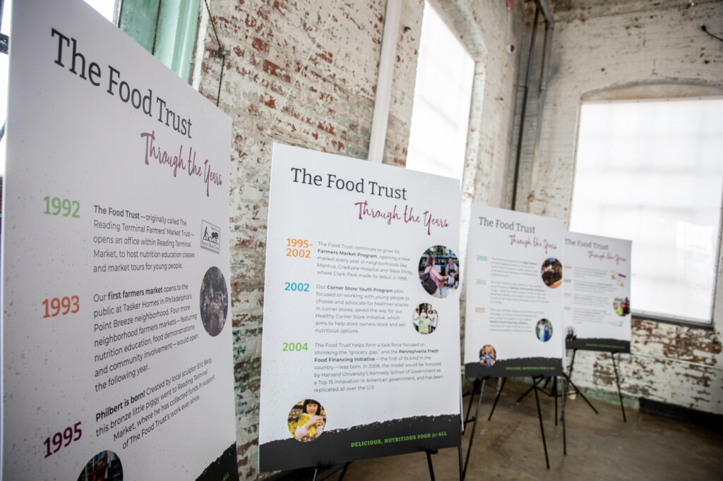 But Fresh Picked wasn’t all about eating and drinking — activities throughout the evening helped celebrate the 30+ year evolution of The Food Trust from a small South Philly farm stand to a national organization. Attendees could check out a timeline display showcasing milestones from throughout our history; enjoy a rotating selection of vintage Food Trust photographs on the big screen; and participate in a curated silent auction with special items donated by some wonderful Food Trust friends — from an empanada class at Mission Taqueria, to a baking lesson with High Street on Market’s head pastry chef.