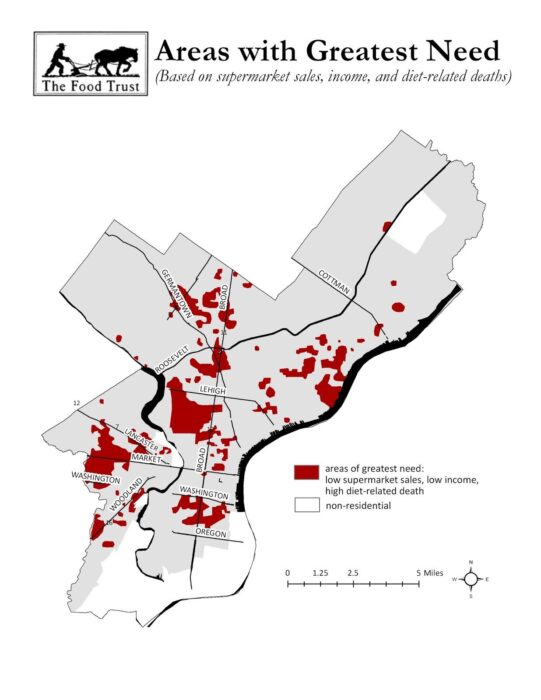 The map resonated with Philadelphia City Council, who asked The Food Trust to convene a task force, the Food Marketing Task Force, to come up with solutions. The Food Trust brought together representatives from the civic sector, public health, economic development, city government, and even grocery stores to best understand the challenges to investing in these underserved communities. After one year, the task force presented City Council with 10 recommendations for increasing supermarket investment across the city. One recommendation was the Pennsylvania Fresh Food Financing Initiative, the first HFFI in the country. The state then adopted the program in 2004; the first iteration ran from 2004-2010 and had $30 million in funding. The program was recapitalized in 2018 and continues to this day with management by The Food Trust.