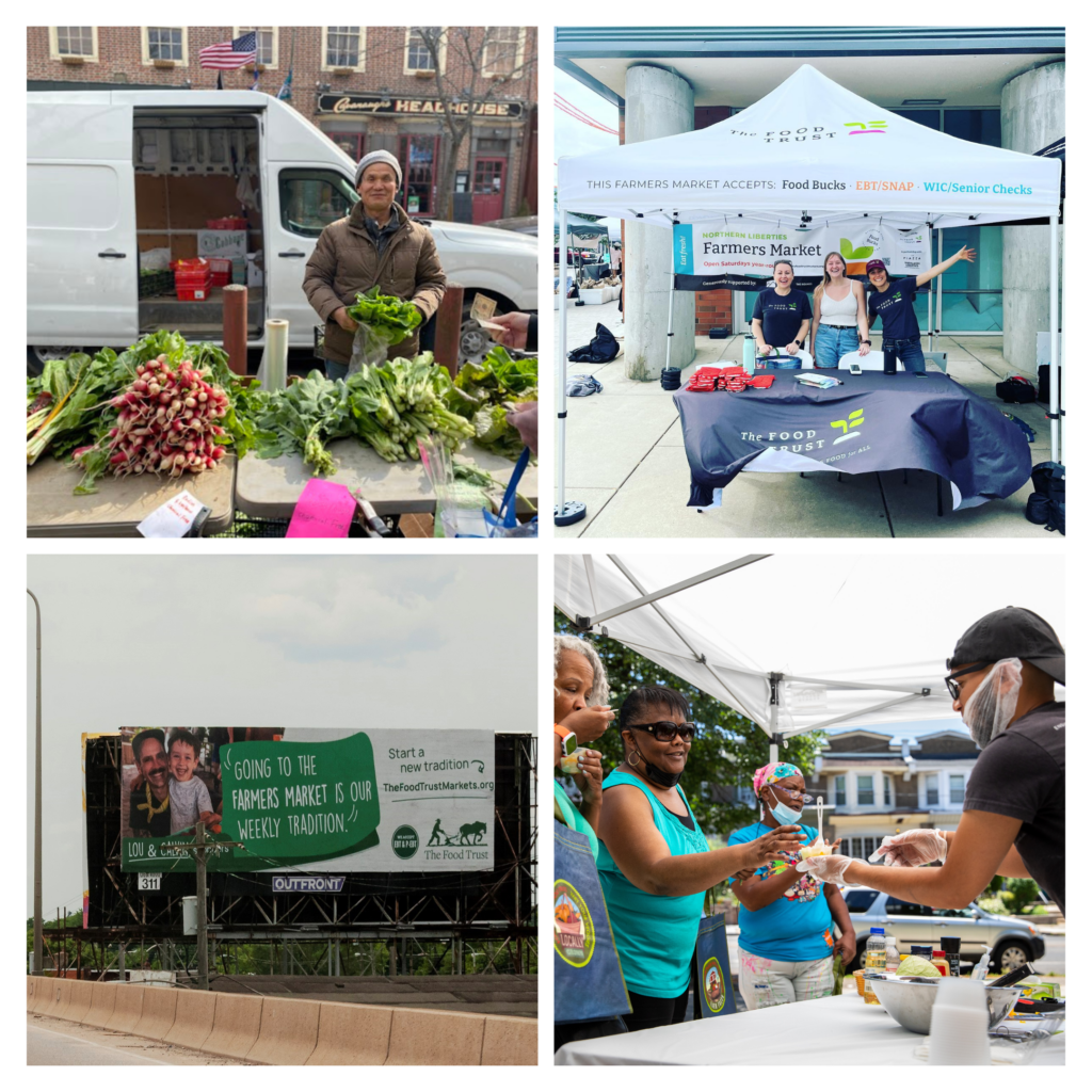 can still be earned and redeemed at all Food Trust markets, and the program has also expanded to retail sites across Pennsylvania and New Jersey. In 2021, with the support of the USDA, we launched a citywide billboard campaign, featuring market vendors, shoppers and staff, that touted the benefits of shopping local at farmers markets.